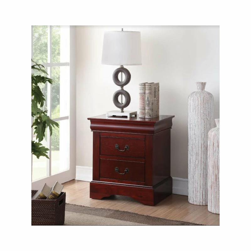 A traditional design in a low-footprint frame, the Louis Philippe Nightstand is the piece you want within reach when you’re laying in bed. With its deep cherry finish and contoured edges, the Louis Philippe is a classic complement for any space, from casual settings to the most sophisticated. Bring versatile elegance to your design and give a home to your bedside essentials with this two-drawer nightstand.