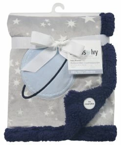 Lambs & Ivy Milky Way Gray/Blue Stars And Planet Minky/Sherpa Soft Baby Blanket