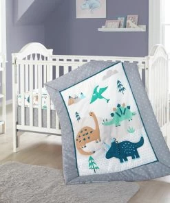 Nanshing America, Inc. The Jungle Friends 3 Piece Baby Nursery Bedding Set, Cute Dino, 33 X 42