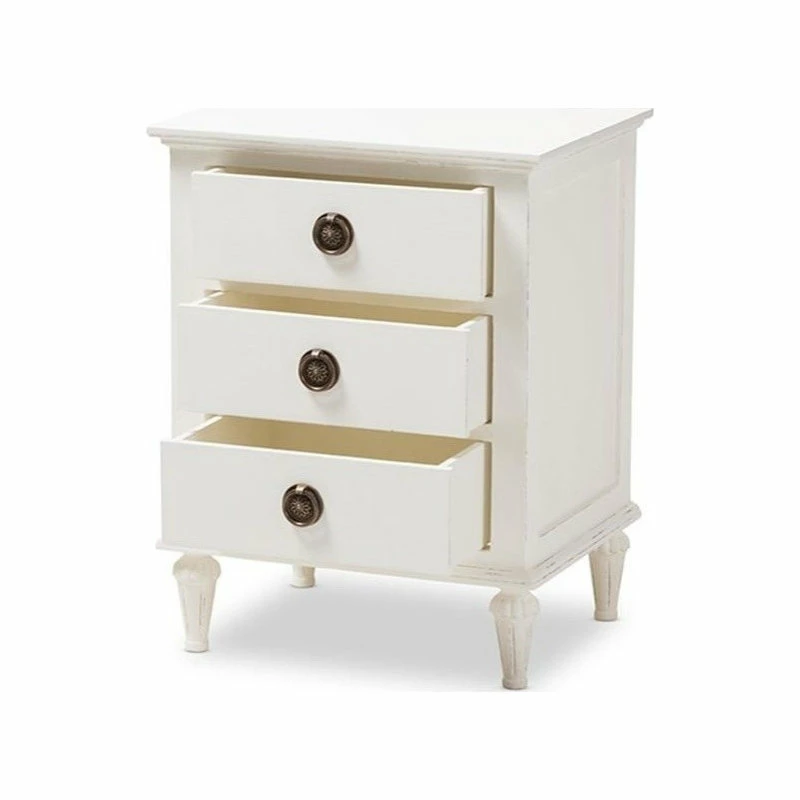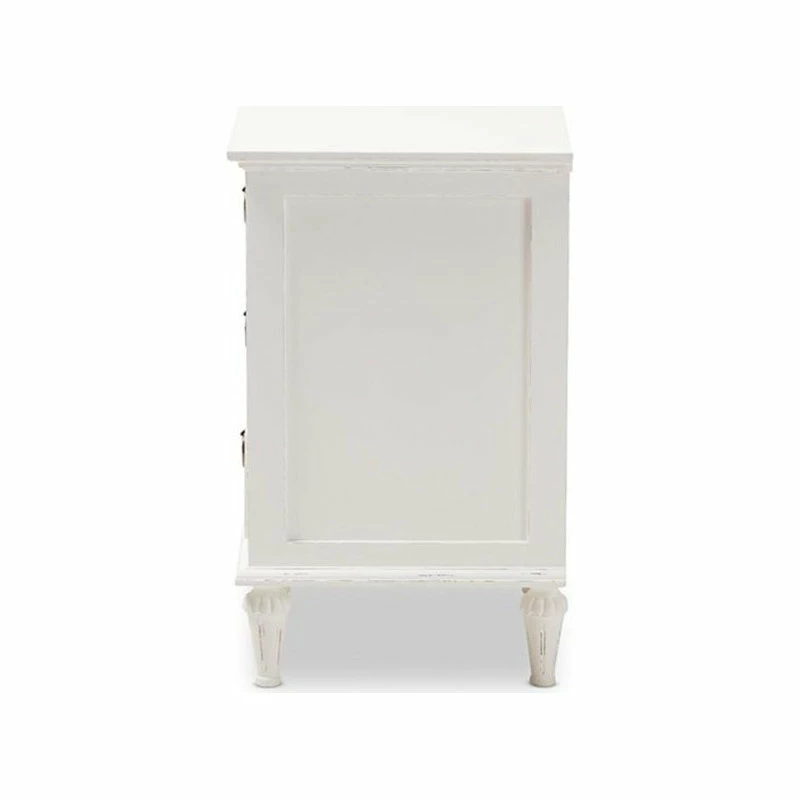 Baxton Studio Venezia French-Inspired Rustic Whitewash Wood 3-Drawer Nightstand