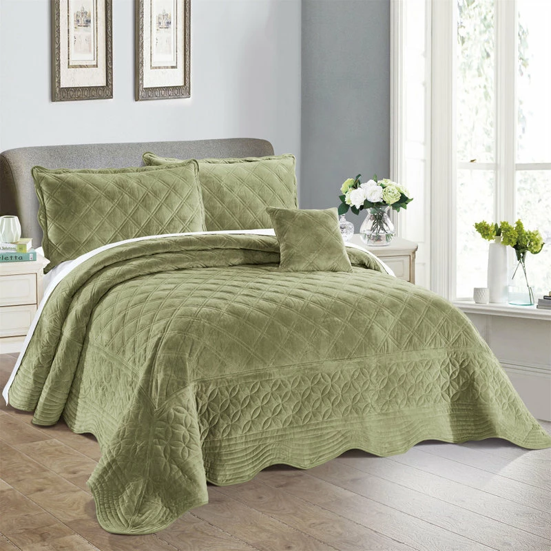 Supersoft Microplush Quilted Bedspreads are exactly as described the high end tiny microfibers in this bedspread allow for the microplush to really come out in this set. Ultra soft, and fluffy. Will keep any body warm forever and because of the type of microfiber quality this bedspread is made from it will last a life time with the proper care. This solid colored bedspread has a beautiful look with the texture of the fabric and softness feel.