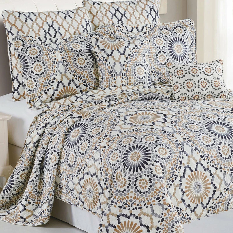 The Tradewinds seven piece quilted bed spread collection is more than a quilt, it is a designed masterpiece created to catch a viewers eye and keep you comfortable on chilly nights. Made of high end microfiber the fabric Gets softer after every wash and with the heat treated print design this bedspread will never fade.