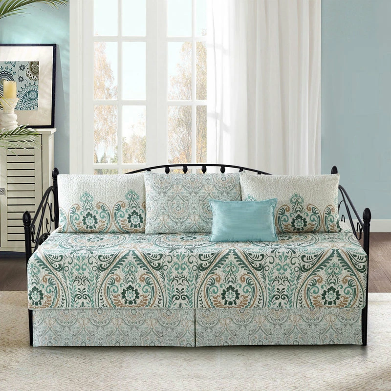 BNF Home Visionary Damask 6 Piece Quilted Daybed Set, Blue, Daybed, 75″x39″
