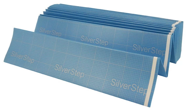 Cal-Flor’s SilverStep underlayment is folded in an accordion style to speed up the installation process by lying flat and not curling or re-rolling. This underlayment has a printed grid on top, which makes laying and trimming to fit a room easier. SilverStep’s cross-linked (closed cell) foam provides superior protection from both moisture and sound (noise) sources (IIC 72; STC 66). The extra thick pad provides good thermal insulation properties and makes it especially suited for subfloors with a rougher than normal finish. This underlayment can be used on radiant heat floors.