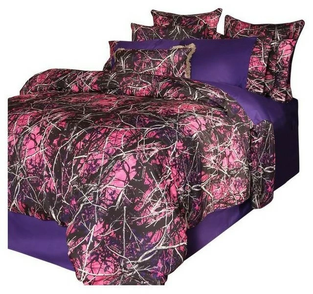 If you’re scouting for style, look no further than our new Muddy Girl Camo set a bold, feminine statement for the rough-and-tough camo buff! Disruptively patterned branches stand out in sharp relief against a dark purple background, creating a wild and outdoorsy look. Combine with dark purple sheets and matching drapes, shower curtain, and valance to create a coordinating, unspoiled environment. When it comes to your terrain, don’t conceal your fashion zeal! Aim for Muddy Girl Camo the perfect ammo.
