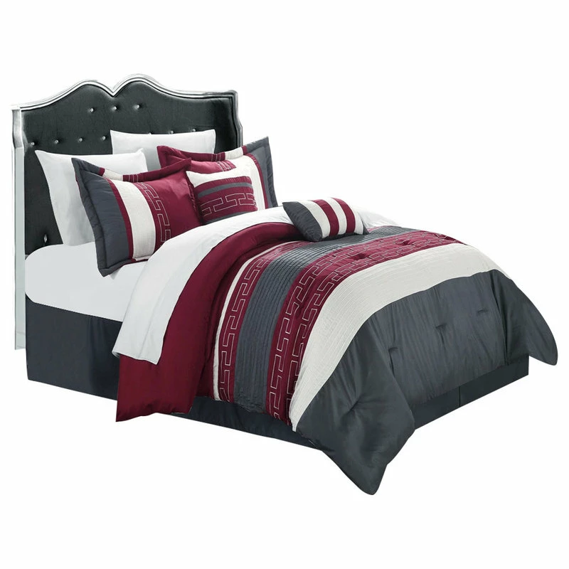 Chic Home Carlton Burgundy, Gray And White King 10-Piece Comforter Bed In A Bag Set