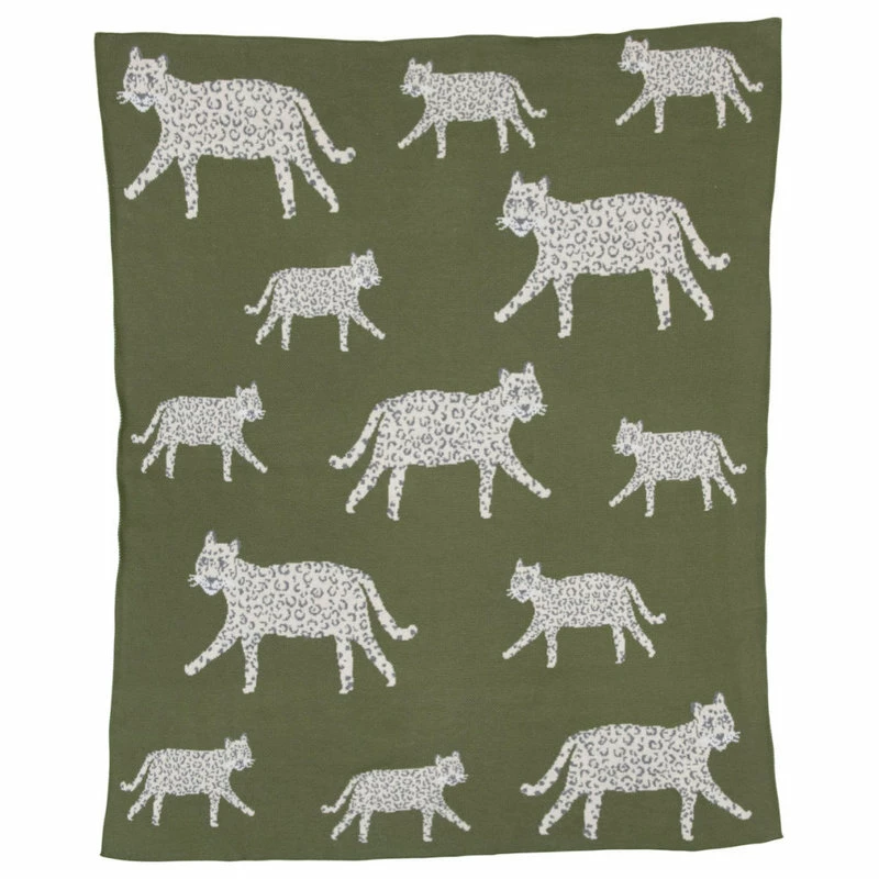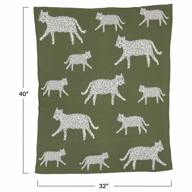 CREATIVE CO-OP Cotton Knit Baby Blanket With Jaguars