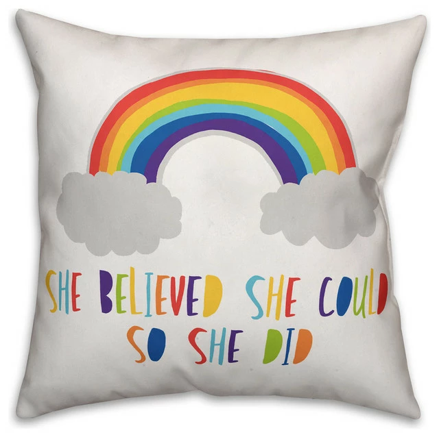 DDCG She Believed She Could So She Did Rainbow 16×16 Spun Poly Pillow