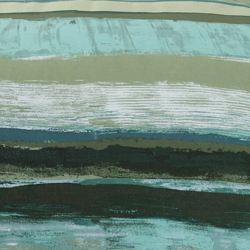 Let turquoise, green and teal hues wash over you with the Cameron Forest watercolor stripe comforter set from Five Queens Court. Cameron Forest bedding. One (1) Comforter, One (2) Sham.