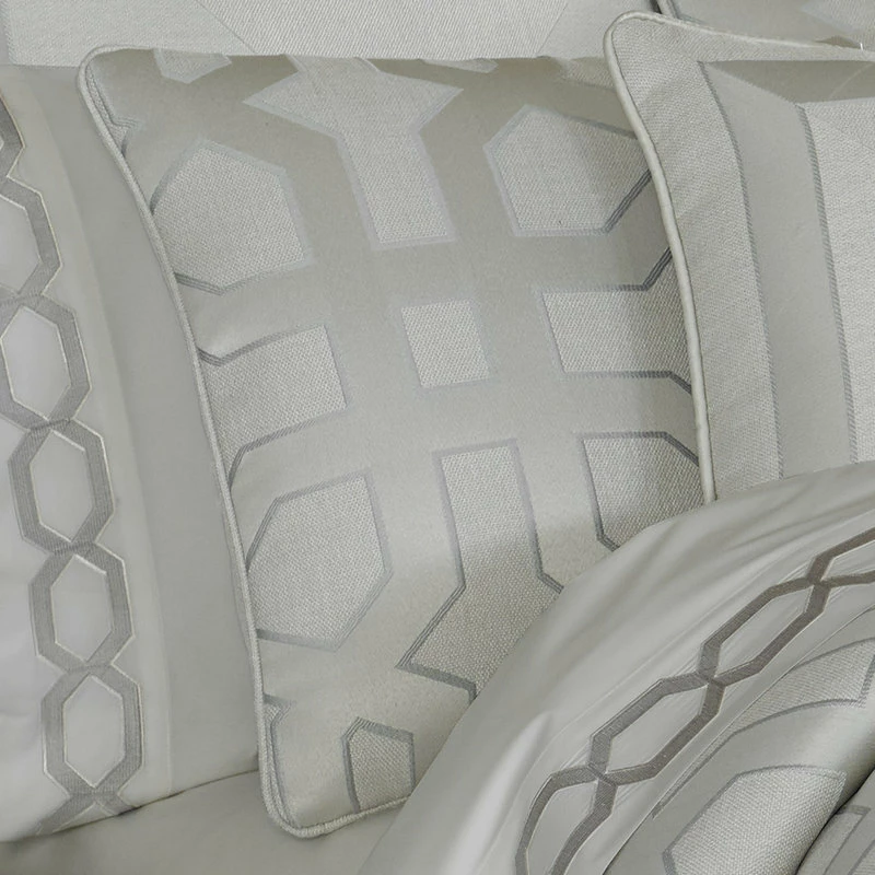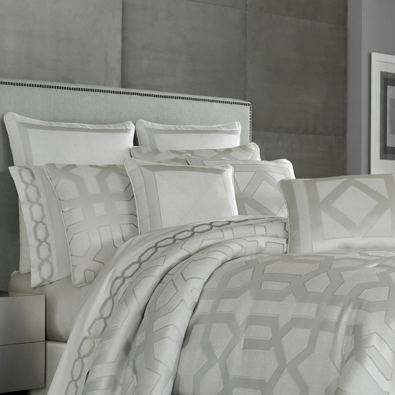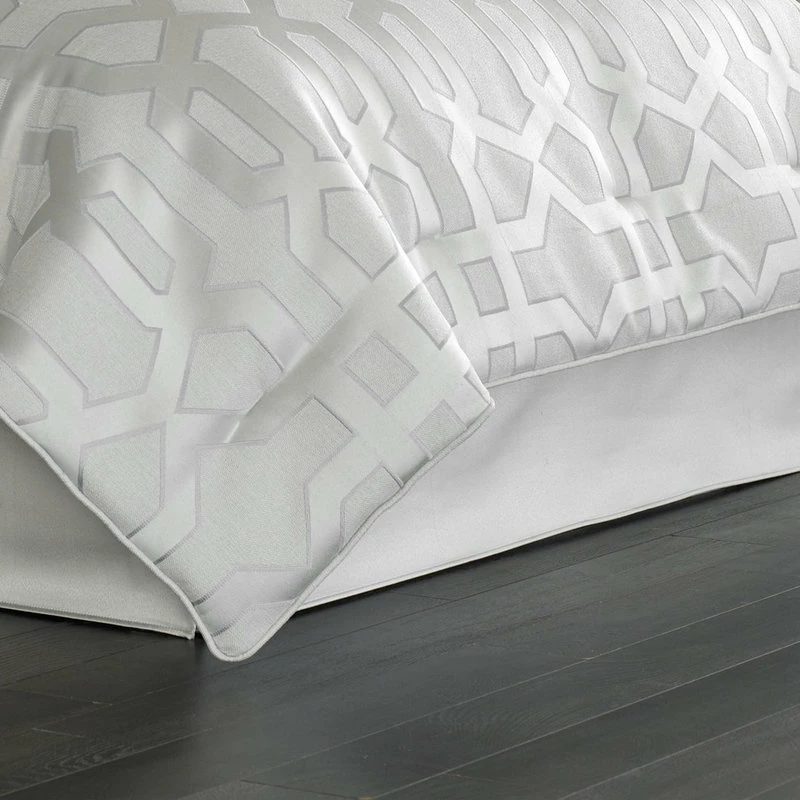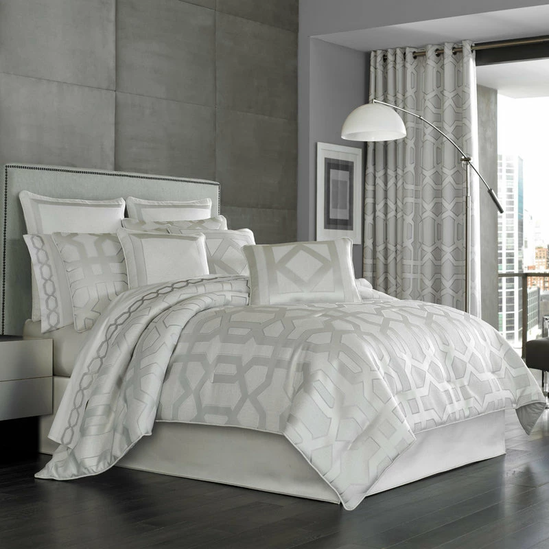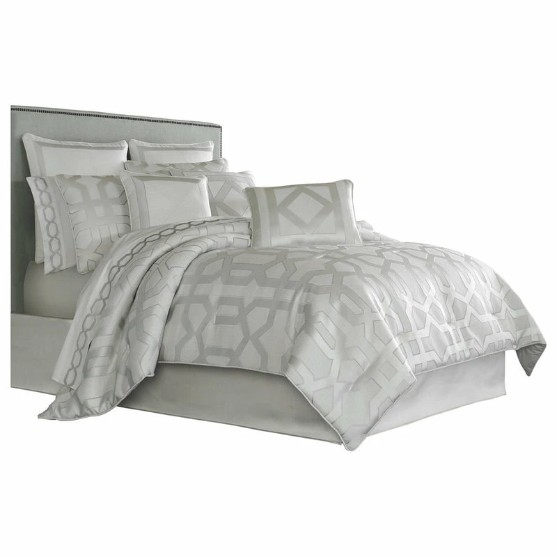A sophisticated geometric pattern in elegant silver coloring makes this Five Queens Court Kennedy comforter set a lovely center for your bedroom decor.