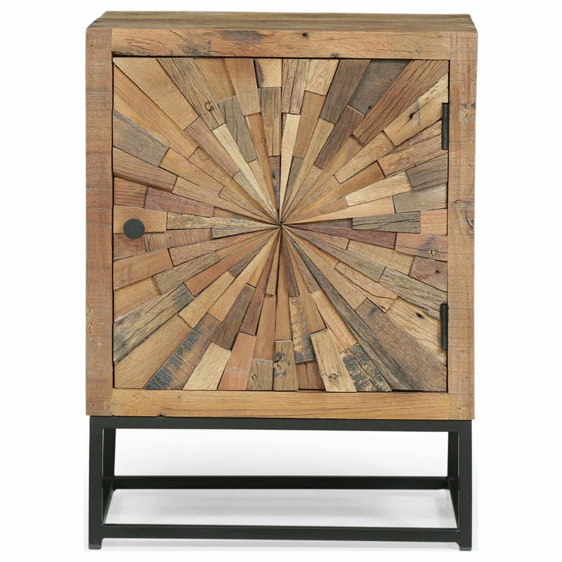 Clear your clutter with an accessory that is perfect for any home. Featuring an eco-friendly wood structure for a one-of-a-kind design, our side table cabinet brings a sophisticated yet boho look to your home, complemented by a handcrafted finish for an antique look. This cabinet is completed with a stunning sunburst design and plenty of storage space, giving you ample room and style to organize your items. Blending seamlessly with your existing decor, this stand will bring out the best of your interior space.
