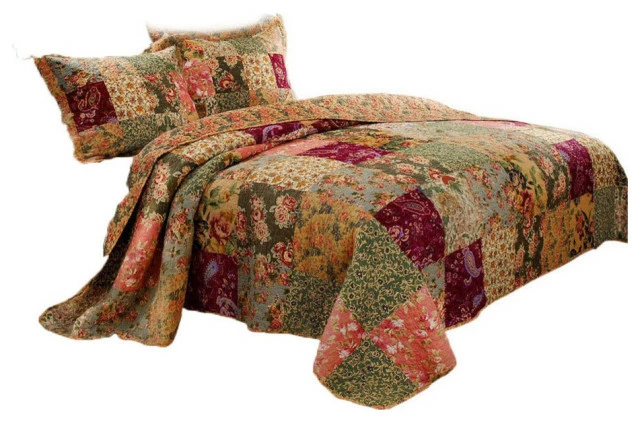 Set includes: Bedspread and two pillow shams (one sham per twin set).