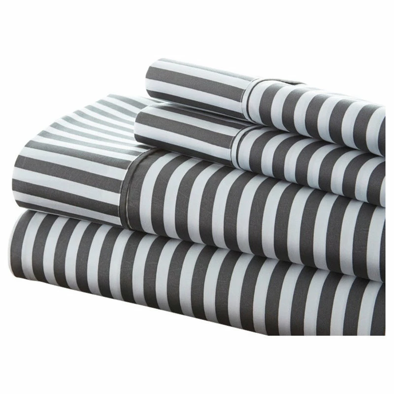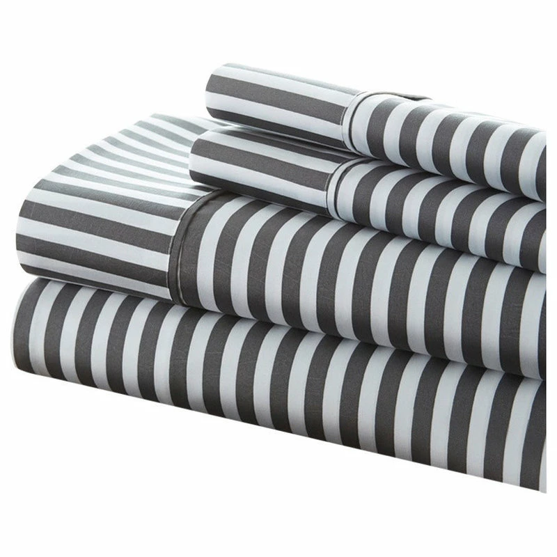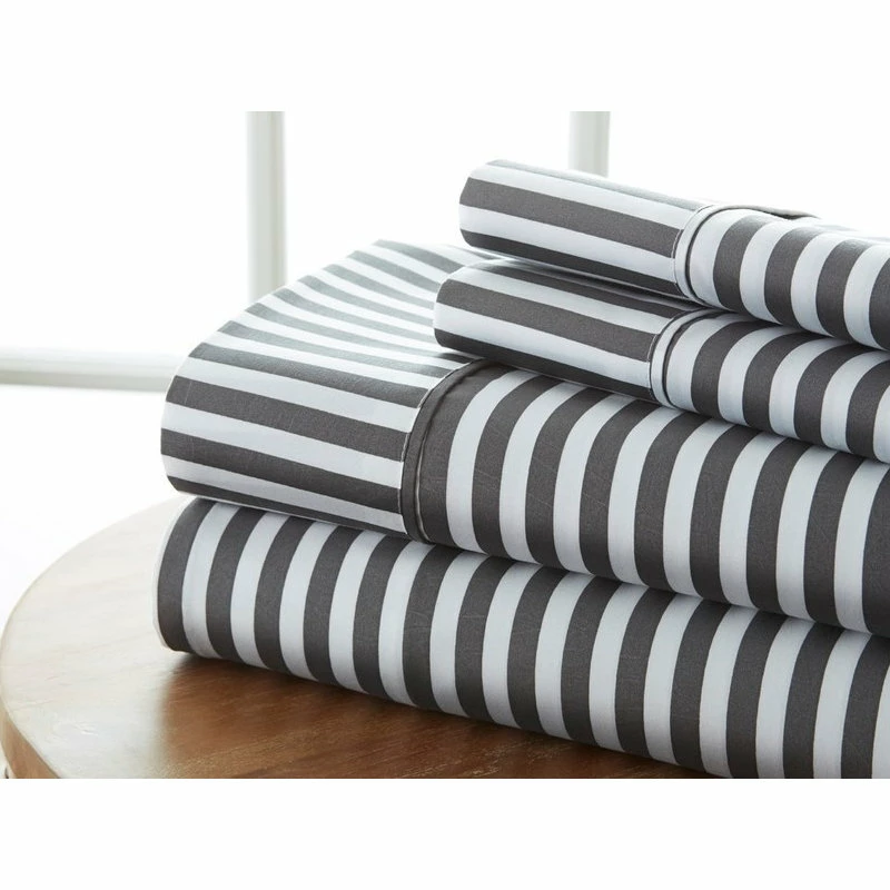 Ienjoy Home Home Collection Premium 4-Piece Ribbon Printed Bed Sheet Set, Queen, Gray