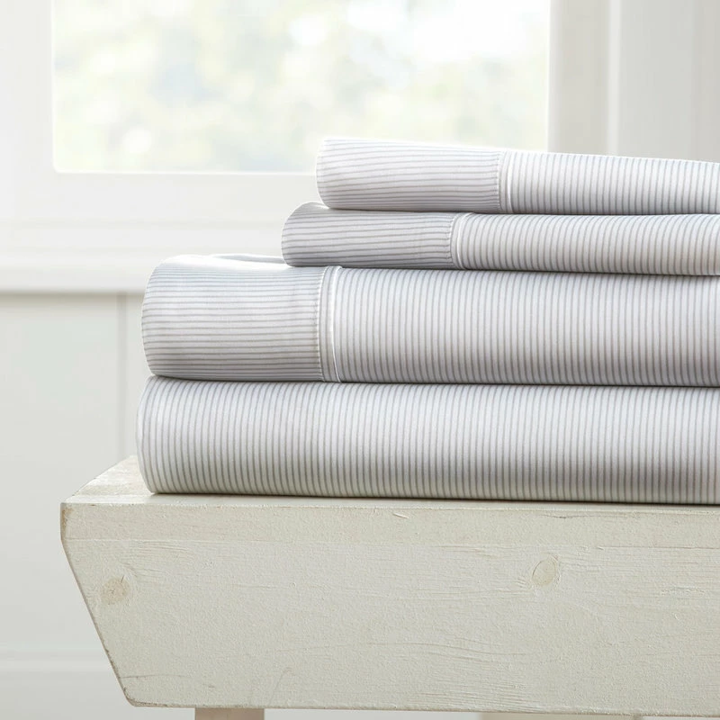 The Home Collection 4-Piece sheet set is designed with your comfort in mind. Add a designer accent to your bedroom decor with this timeless printed pattern artistically created to be a wonderful addition to any bedroom. Made of the finest imported double-brushed microfiber yarns creating a standard in softness and breathability, this 4-piece sheet set will make it incredibly hard to get out of bed in the morning. Our premium yarns are two times more durable than cotton, completely wrinkle free, and perfect for all seasons.