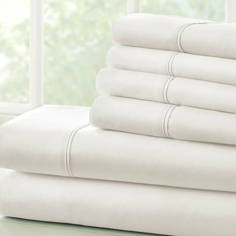 Give your bedroom a luxurious update with the Ultra Soft Luxury Bed Sheet Set. Breathable fabric and a buttery-soft touch spread a luxurious foundation to any guest bed or master suite. Made of microfiber yarn, this set includes one flat sheet, one fitted sheet and four pillowcases which make for the perfect night’s sleep.