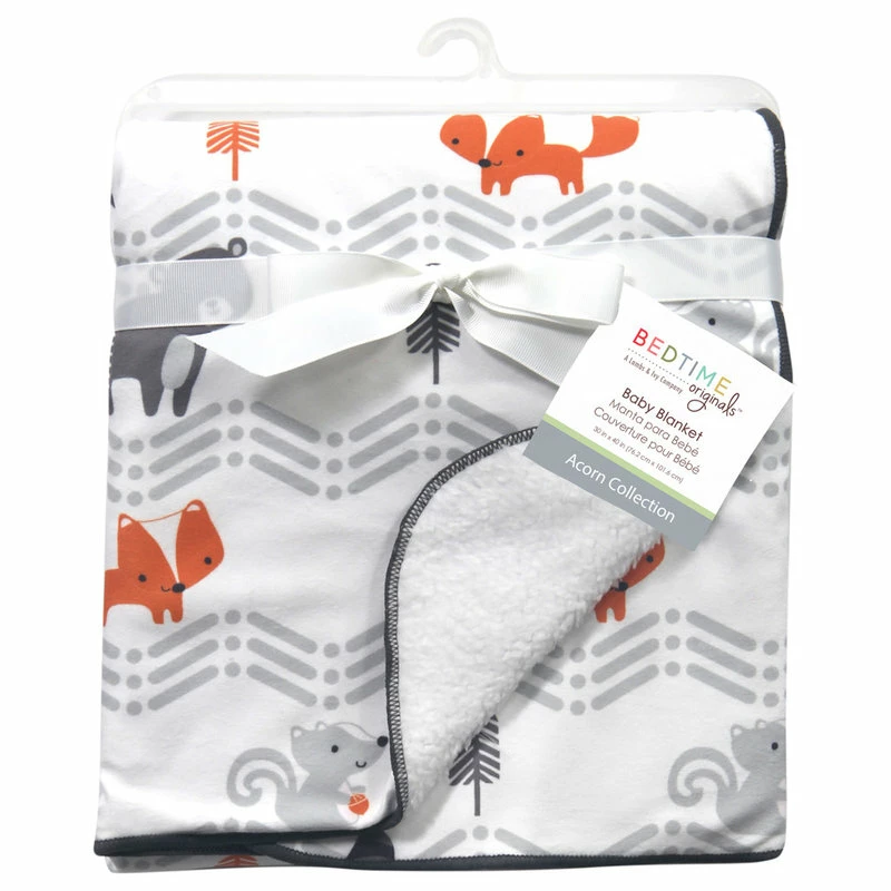 Lambs & Ivy Bedtime Originals Acorn Blanket – Gray, Animals, Woodland, Forest, Outdoors