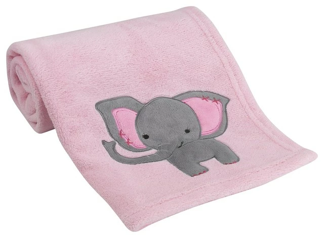 Lambs & Ivy Bedtime Originals Twinkle Toes Soft Pink Coral Fleece Elephant Baby Blanket