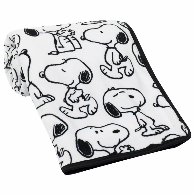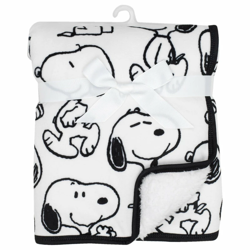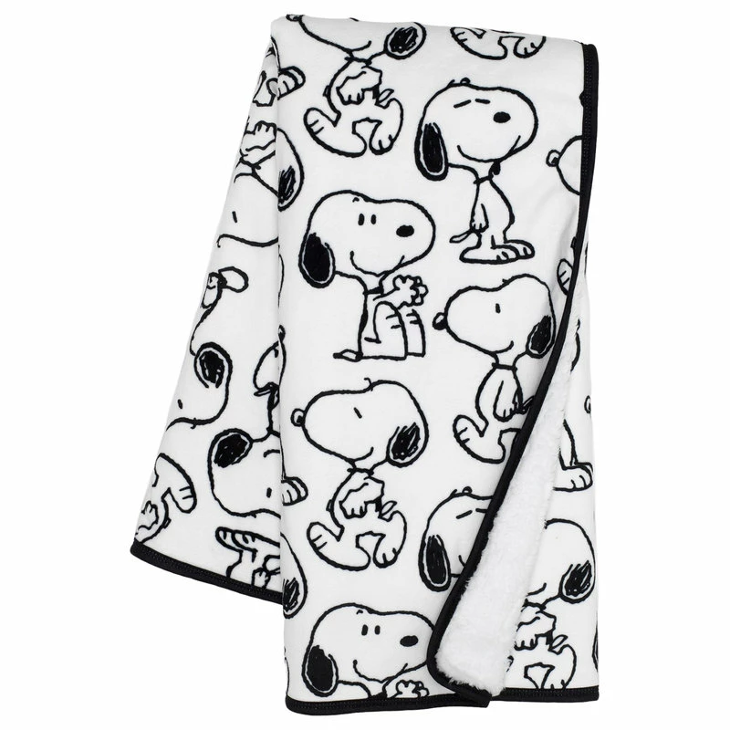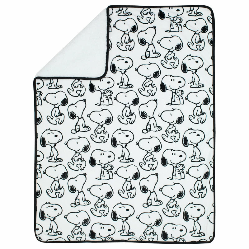 Lambs & Ivy Classic Snoopy Minky And Sherpa Baby Blanket – White/Black