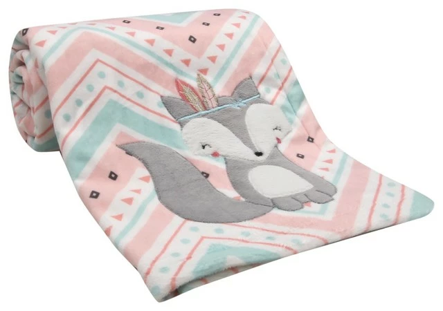 Lambs & Ivy Little Spirit Coral/White/Blue Chevron Fox Luxury Baby Blanket