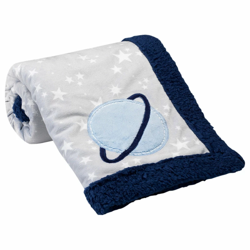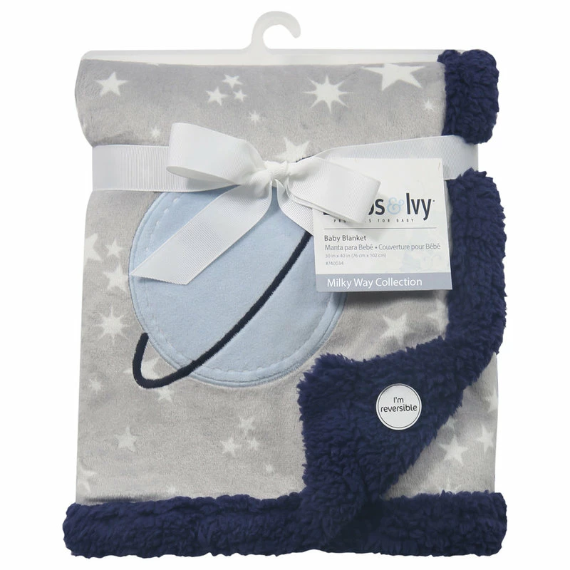 Lambs & Ivy Milky Way Gray/Blue Stars And Planet Minky/Sherpa Soft Baby Blanket