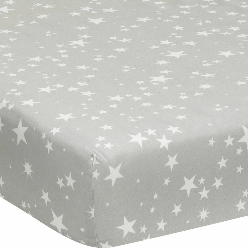 Lambs & Ivy Milky Way Gray/White Stars 100% Cotton Baby Fitted Crib Sheet