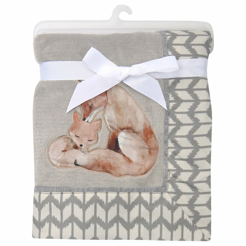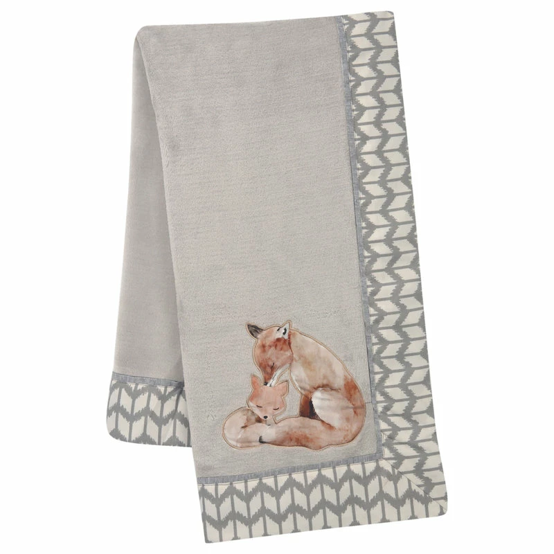 Lambs & Ivy Painted Forest Fox Coral Fleece Baby Blanket – Gray