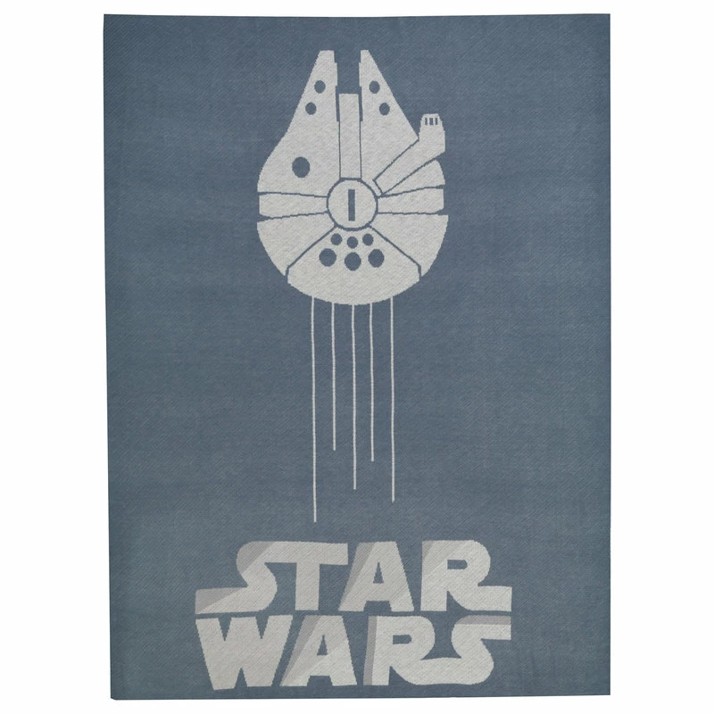 Rule the Star Wars Galaxy with this officially licensed expertly knitted, ultra soft acrylic knit baby blanket. This dusty blue knit blanket features a light gray Millennium Falcon along with the words Star Wars. Perfect for snuggling at home or on the go this stylish blanket will keep your little one warm and cozy. Sized at 30” X 40” this blanket is perfect for over a stroller/car seat or for wrapping up baby. It makes the coolest baby shower gift or welcome home baby gift and is a top baby registry pick as well.