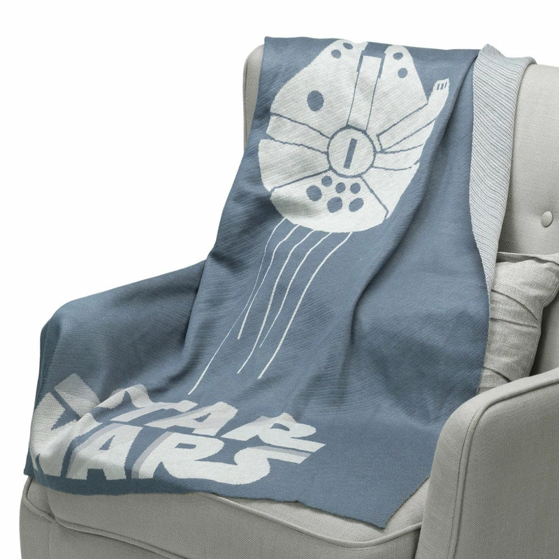 Lambs & Ivy Star Wars Signature Millennium Falcon Blue/Gray Knit Baby Blanket