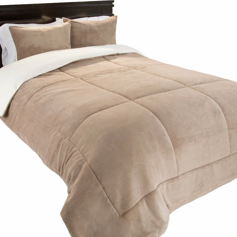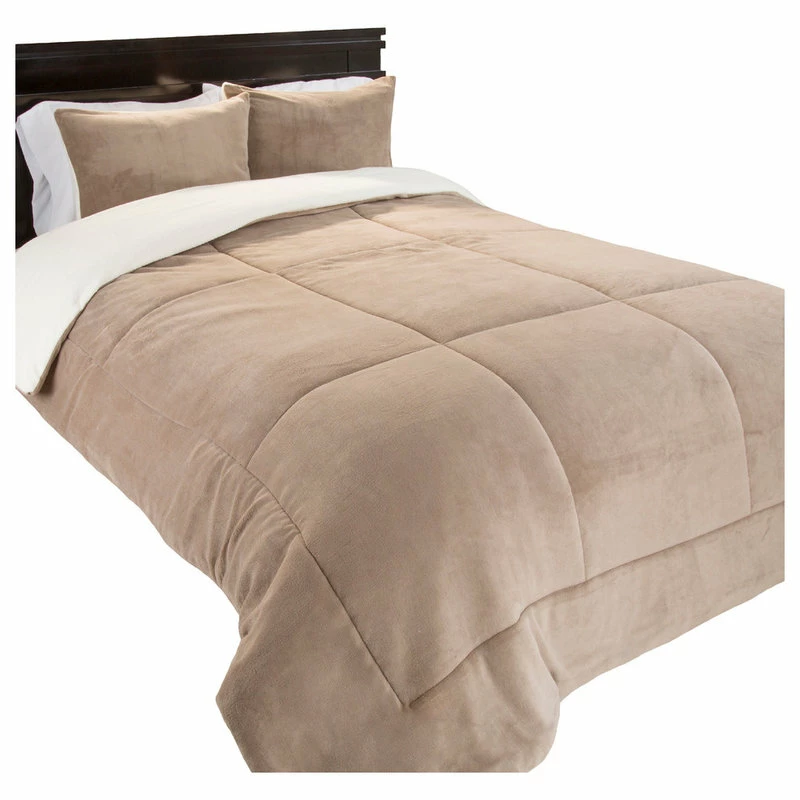 - Style: Oversized, Reversible Fleece Comforter and Shams with Sherpa Backing