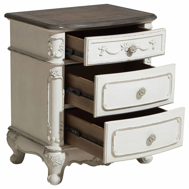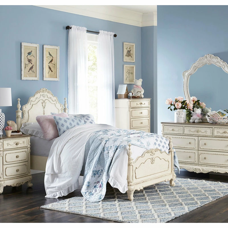 The Averny Collection is your little child’s dream. The Victorian styling incorporates floral motif hardware and traditional carving details that will create the feeling of a room worthy of a fairy tale. There are three available finishes – ecru white, dark cherry and the newly available antique white with grey rub-through that when paired with the multitude of case pieces and three coordinating beds, daybed, canopy bed and panel bed – allows versatility of placement and decor within your available space.