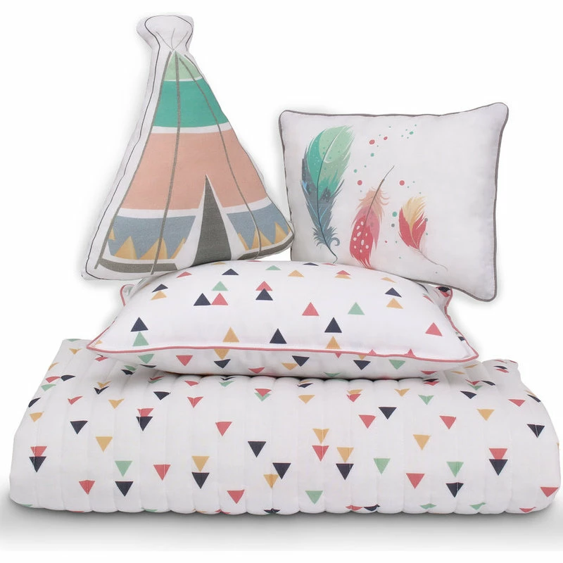 This charming set is perfect for the little dreamer. Featuring a soft cotton quilt, vibrant colors with a dreamcatcher design are sure to capture any little one’s imagination. The quilt is light and airy the perfect size for a crib or toddler bed.