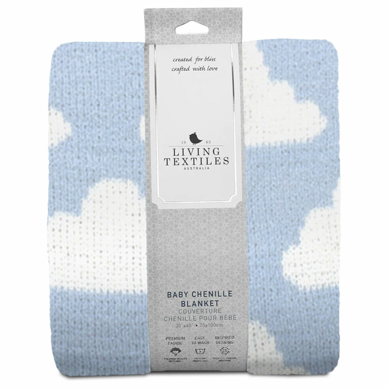 Living Textiles Chenille Baby Blanket, Blue Clouds