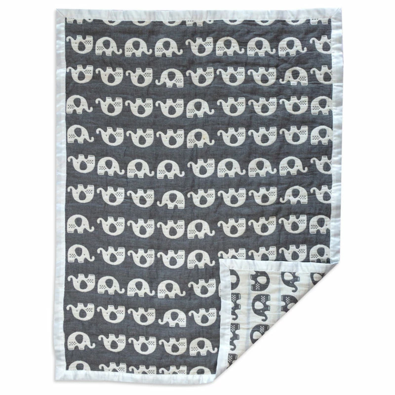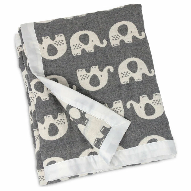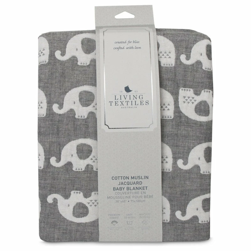 Living Textiles Cotton Muslin Jacquard Blanket, Grey Elephant