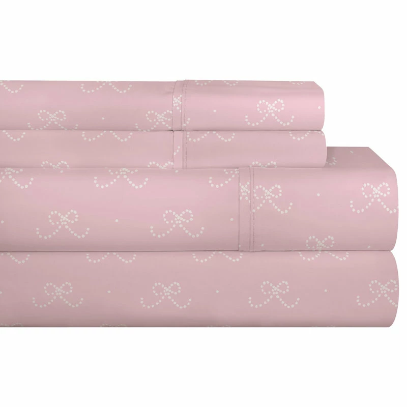Printed on pink, this 200 Thread Count Percale Cotton Pillow Case Set features dotted bows. Pair with Lullaby’s Ballerina Sheet, Duvet, Quilt, and Comforter Sets for a complete bedding ensemble. Standard Pillow Case Pair includes: 2 Standard Pillow Cases: 20″ width x 30″ length.