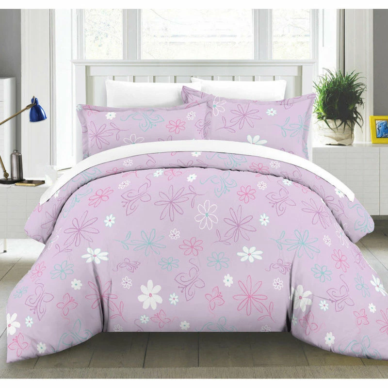 Butterflies grace the flowers on this 200 Thread Count Percale Cotton Duvet Set with zipper closure and corner ties. Complete the bedding ensemble with Lullaby’s Butterfly Garden Sheet, Quilt, and Comforter Sets. Full / Queen Duvet Set includes: Duvet Cover: 88″ width x 90″ length; 2 Standard Shams: 20″ width x 26″ length.