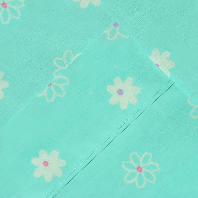 Say hello to summer with Lullaby’s 200 Thread Count Percale Cotton Pillow Case Set featuring lovely whit daisies on a gorgeous aqua. Complete the bedding ensemble with Lullaby’s Butterfly Garden Sheet, Duvet, Quilt, and Comforter Sets. Standard Pillow Case Pair includes: 2 Standard Pillow Cases: 20″ width x 30″ length.