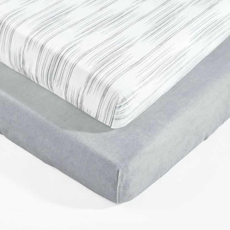 Lush Décor Jungle Adventure Geo Micro Mink Fitted Crib Sheet Gray, Set Of 2 28x52x9