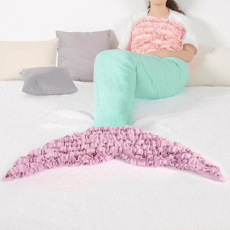 The Mermaid Ruffle Throw is a young mermaid lover’s dream. The ruffled detail on the breast area as well as on the fins brings children’s imaginations to life. Anyone who wears this soft and cozy Sherpa-lined throw will feel like a real mermaid.