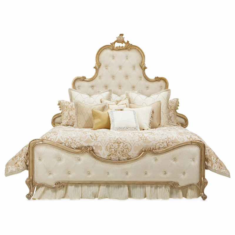 Give your room a classic, updated look with the Luxembourg Comforter Set by Michael Amini. The set features a beautiful large-scale frame design with embroidered gold accents complementing the shades of cream, gold and soft sand. We are mixing a classic design with modern accents. The 6 decorative pillows have beautifully coordinating trims, removable covers and feather fill. The 3-piece adjustable bedskirt has a 21″ drop. The entire set gives a unique sophistication to the master retreat.