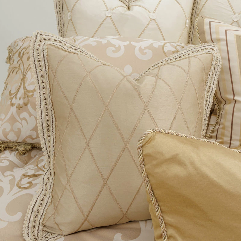 - 6 – Decorative Pillows with Feather Fill: (4) 20” Square; (1) 17” Square; (1) 13” Square
