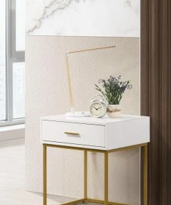 HOMARY Bedroom Nightstand With 2 Drawers, Wood/Stainless Steel, White