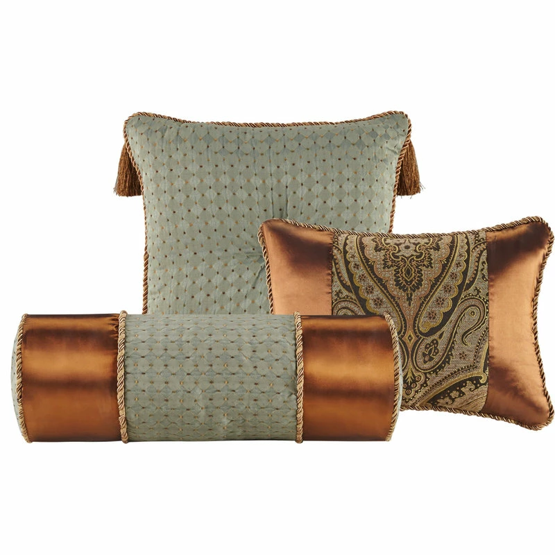 - Fabric manipulation and embroidered decorative pillows have removable cover with hidden zipper