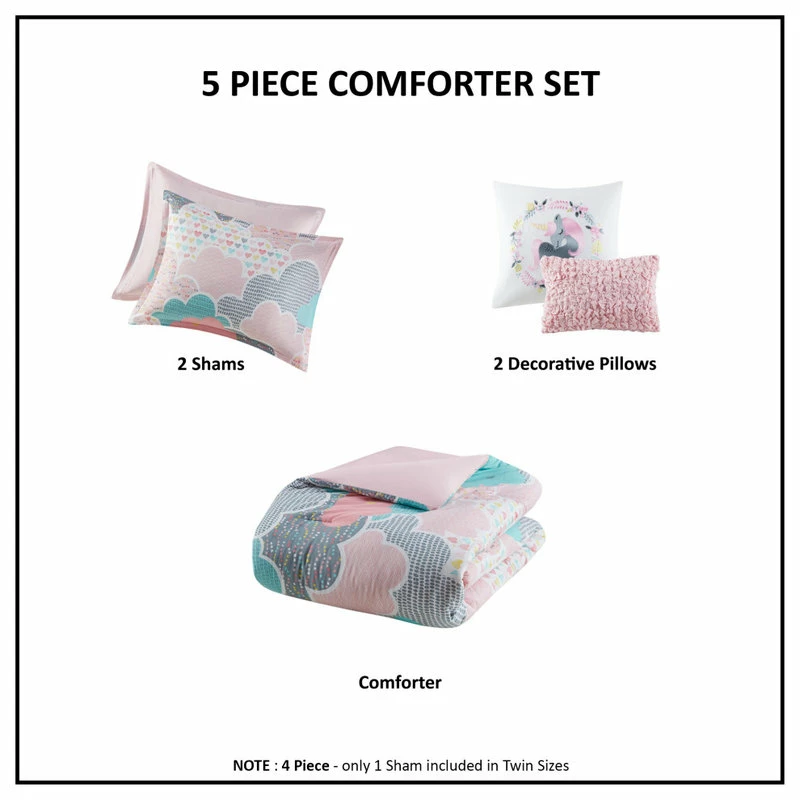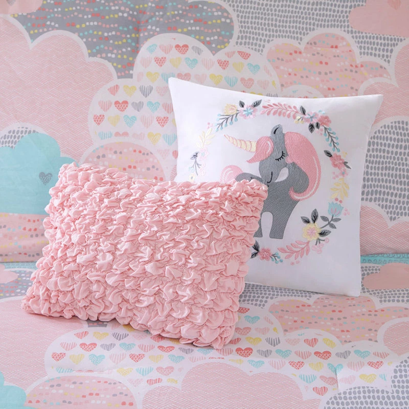 Olliix Kids Cotton Comforter/Duvet Cover/Coverlet Set, Pink, Twin, Comforter