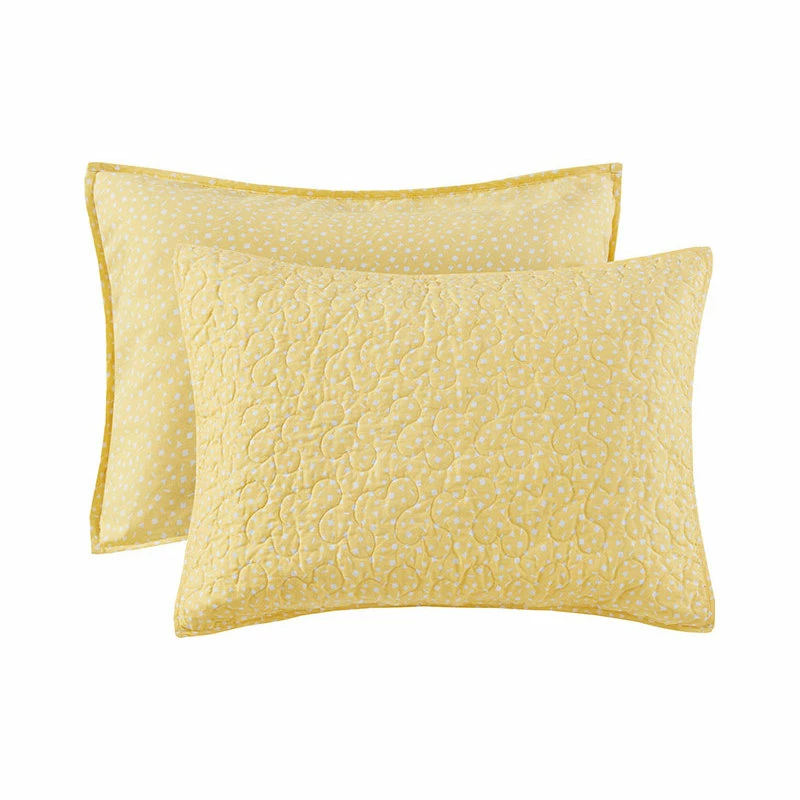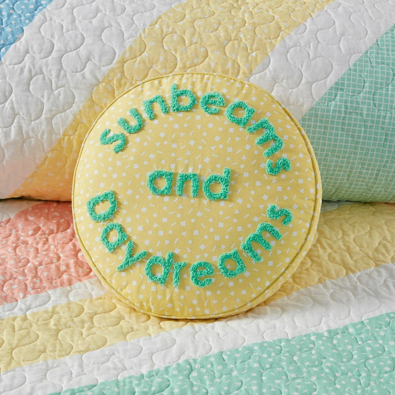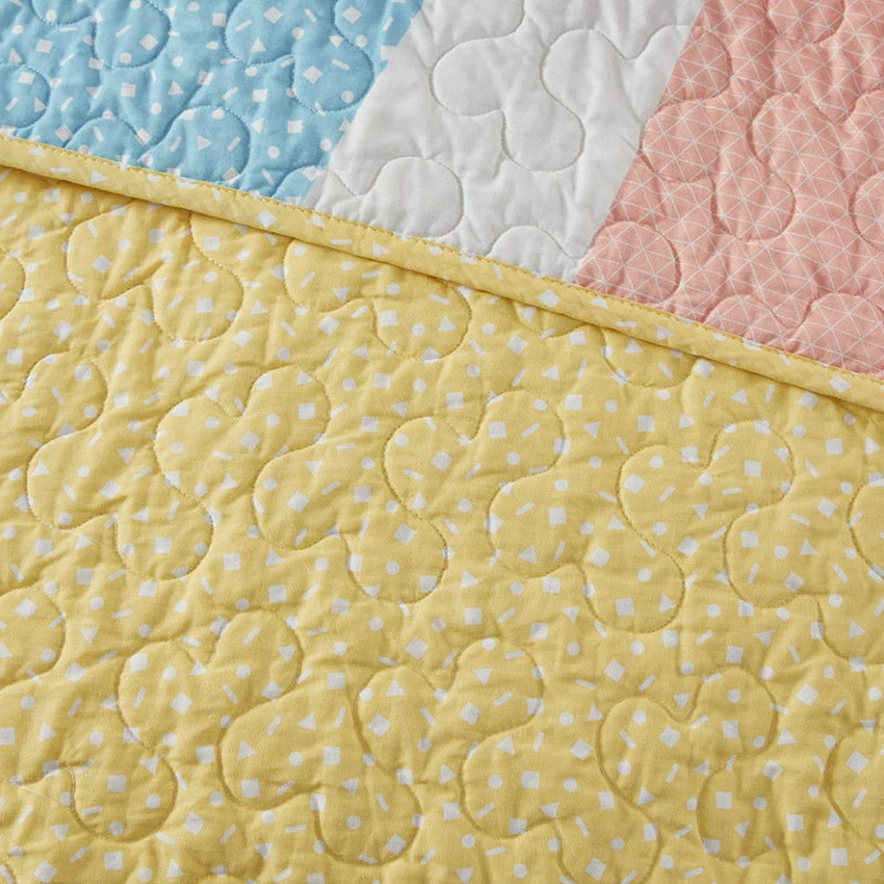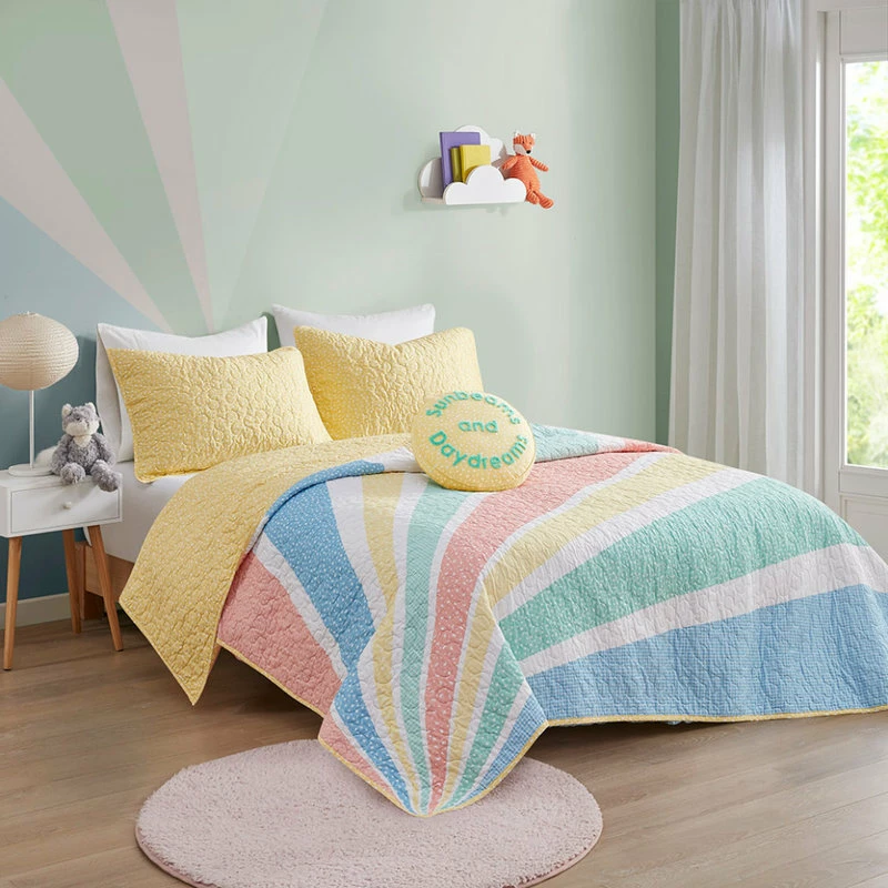- Add some sunshine to your kid’s room with this reversible cotton coverlet set