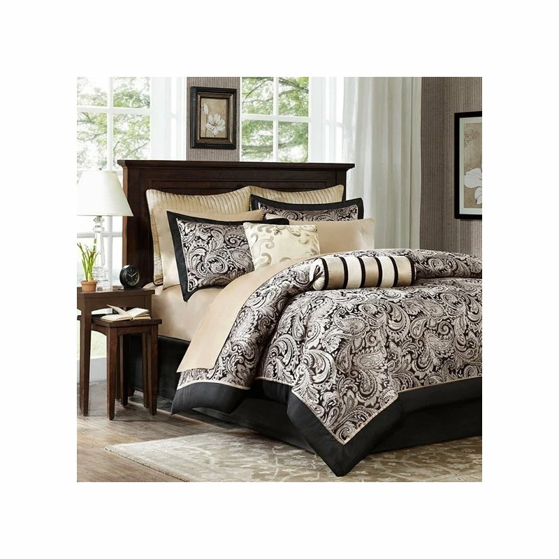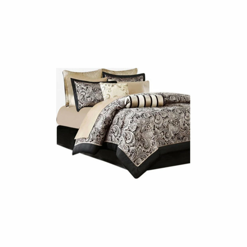- Materials: Comforter/Sham: 100% polyester jacquard with 1/2″ poly charmeuse piping, 100% brushed polyester reverse, 270g/m2 polyester filling