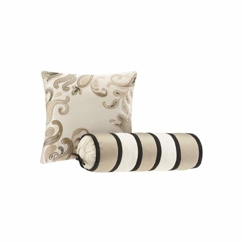 - Neckroll Pillow: 100% polyester charmeuse, pieced with polyoni, pintuck, polyoni reverse, polyester filling