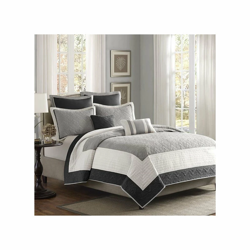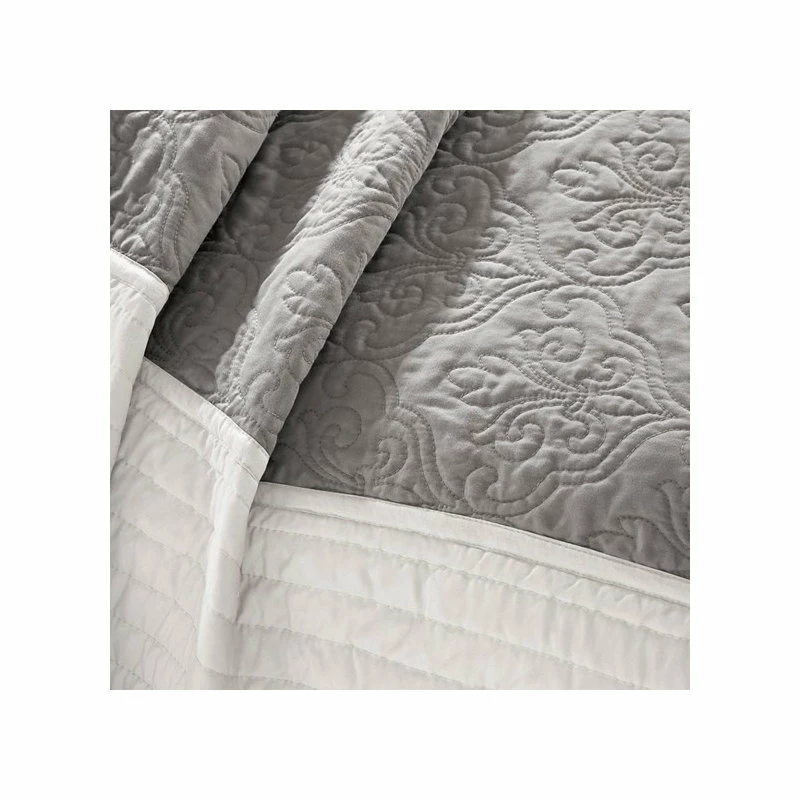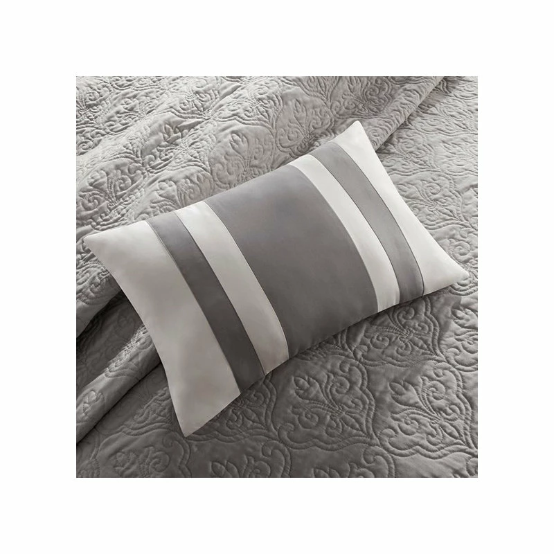 Materials: Coverlet/Sham: 75gsm polyester microfiber, pieced, brushed polyester reverse, 200gsm 90% cotton, 10% other fiber filling, all over quilted, self fabric binding, prewash finish