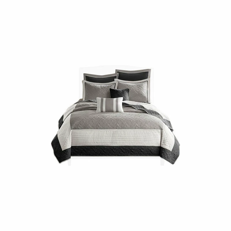 The Attingham coverlet set is set in a black, ivory and gray, all working together to create this beautiful neutral colorway. The black and gray portions of the coverlet have an intricate woven design that add dimension to this coverlet. Made from 100% polyester, this coverlet will keep be easy to care for and keep you cozy all year round. 2 Decorative Pillows: 16×16″ / 12×18″