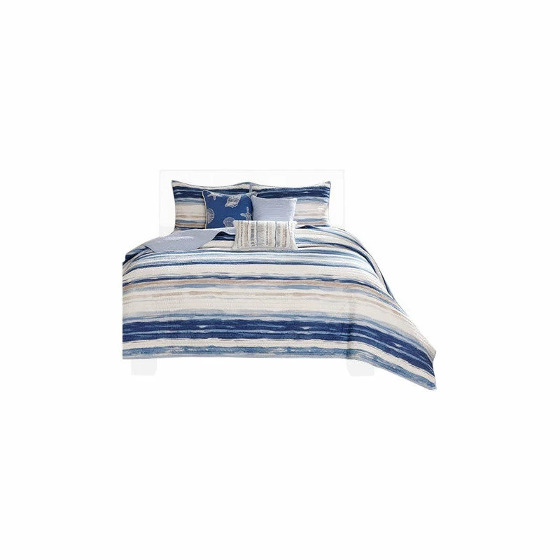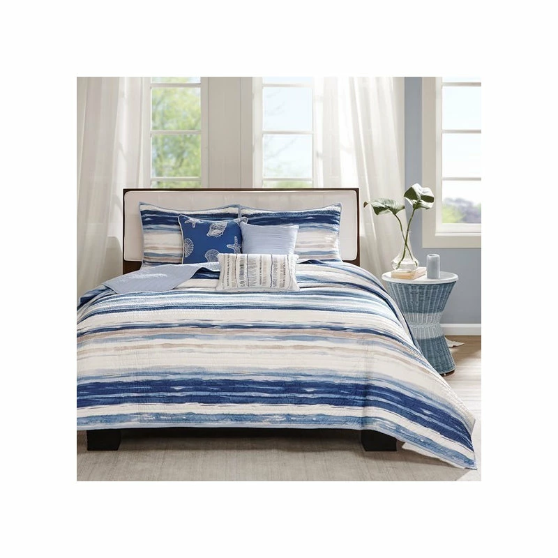 - Serene and tranquil watercolor printed 6 piece quilted coverlet set