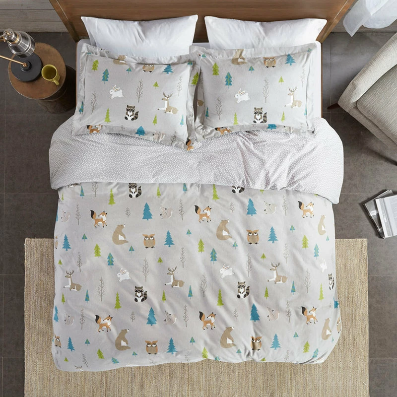This 100% cotton cozy flannel duvet cover and matching shams showcases an adorable motif. Machine washable for easy care, this cotton flannel duvet cover provides you with an incredibly warm and comfortable update to your home. Button closures help secure a comforter insert within the duvet cover and the four internal ties in the corners help prevent it from shifting. A comforter insert is NOT included.